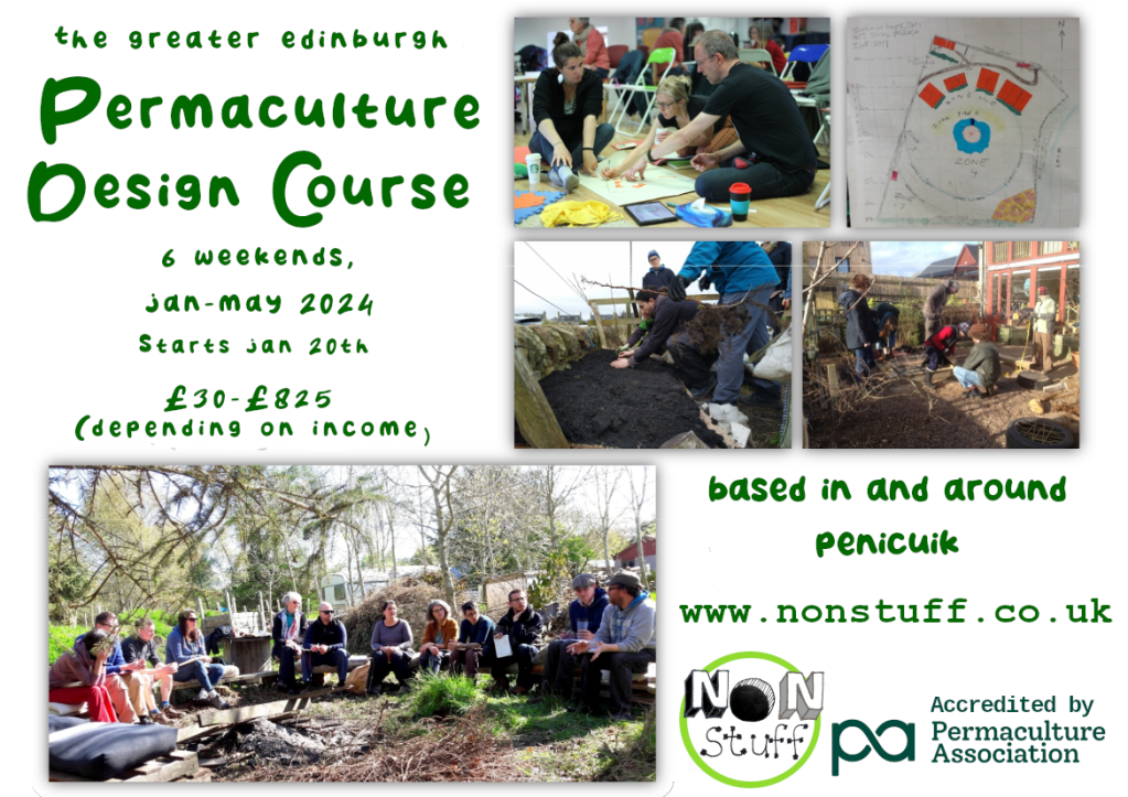Our latest newsletter can be viewed here. It includes info on an introduction course in Leith on 18 and 19 March, freehand chainsaw milling of timber and news from our latest Permaculture Design Course.